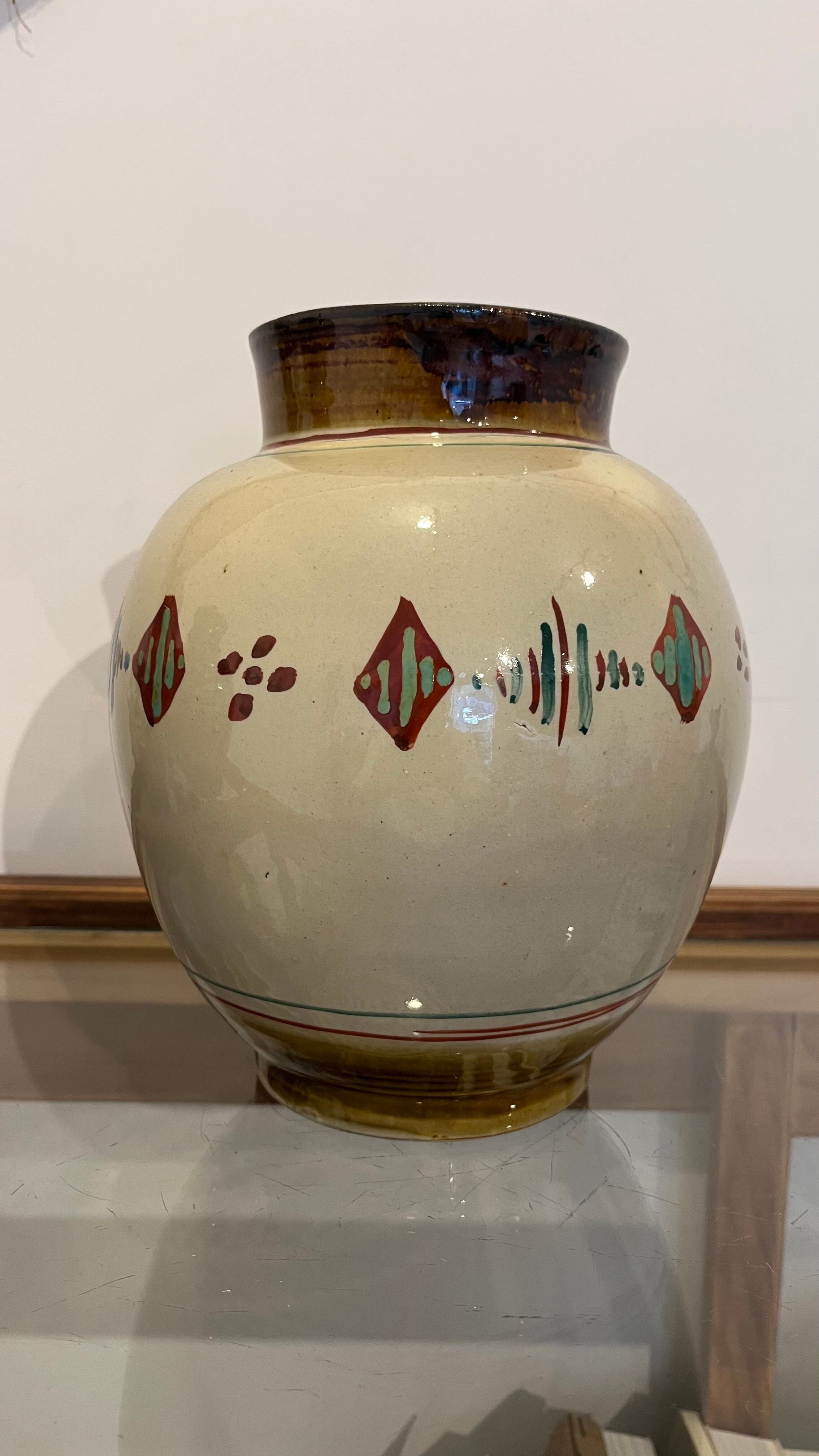 沖縄市読谷村に工房を構える常秀工房さんの陶主、島袋常秀先生作の赤絵壺です。