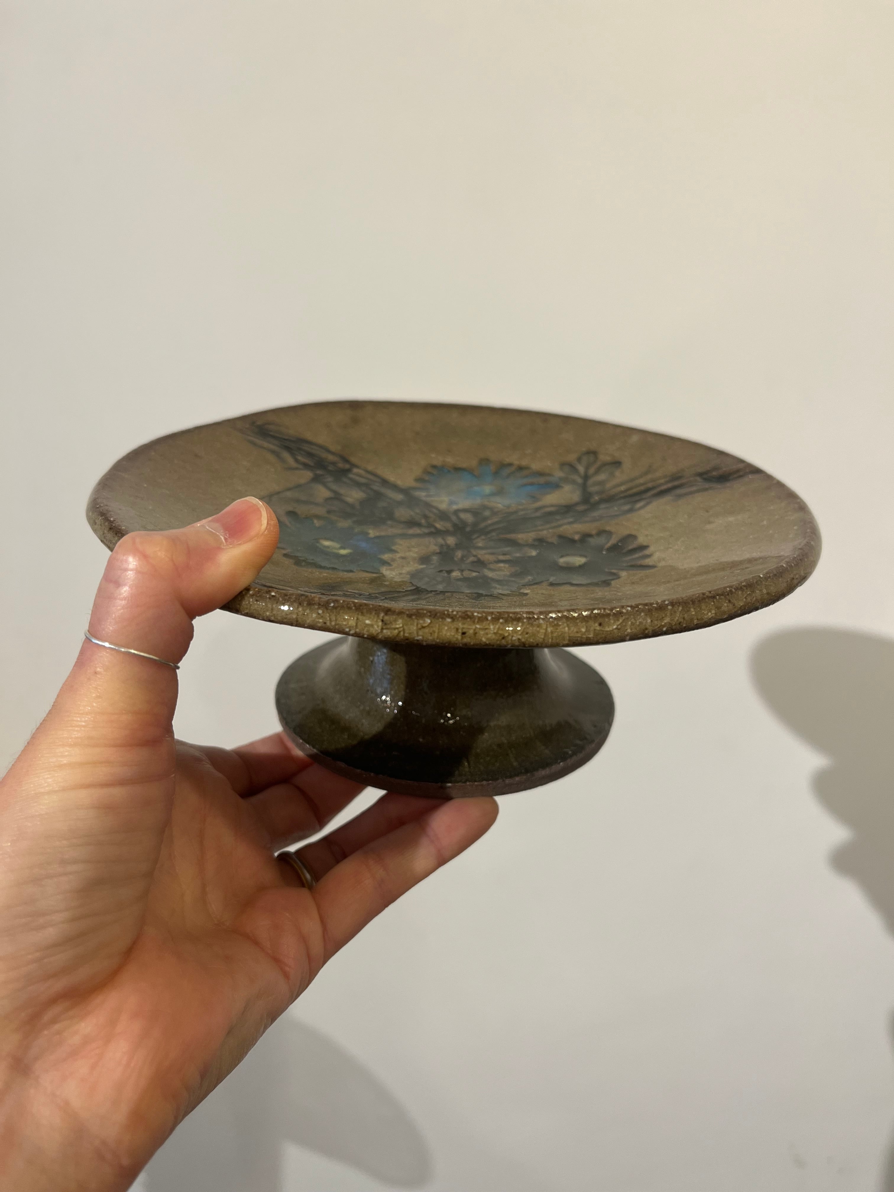 皿表面にボタニカルの型が施されているコンポートタイプのデザインで、るいさんのこだわりが隅々に詰まっている素晴らしい一点です。