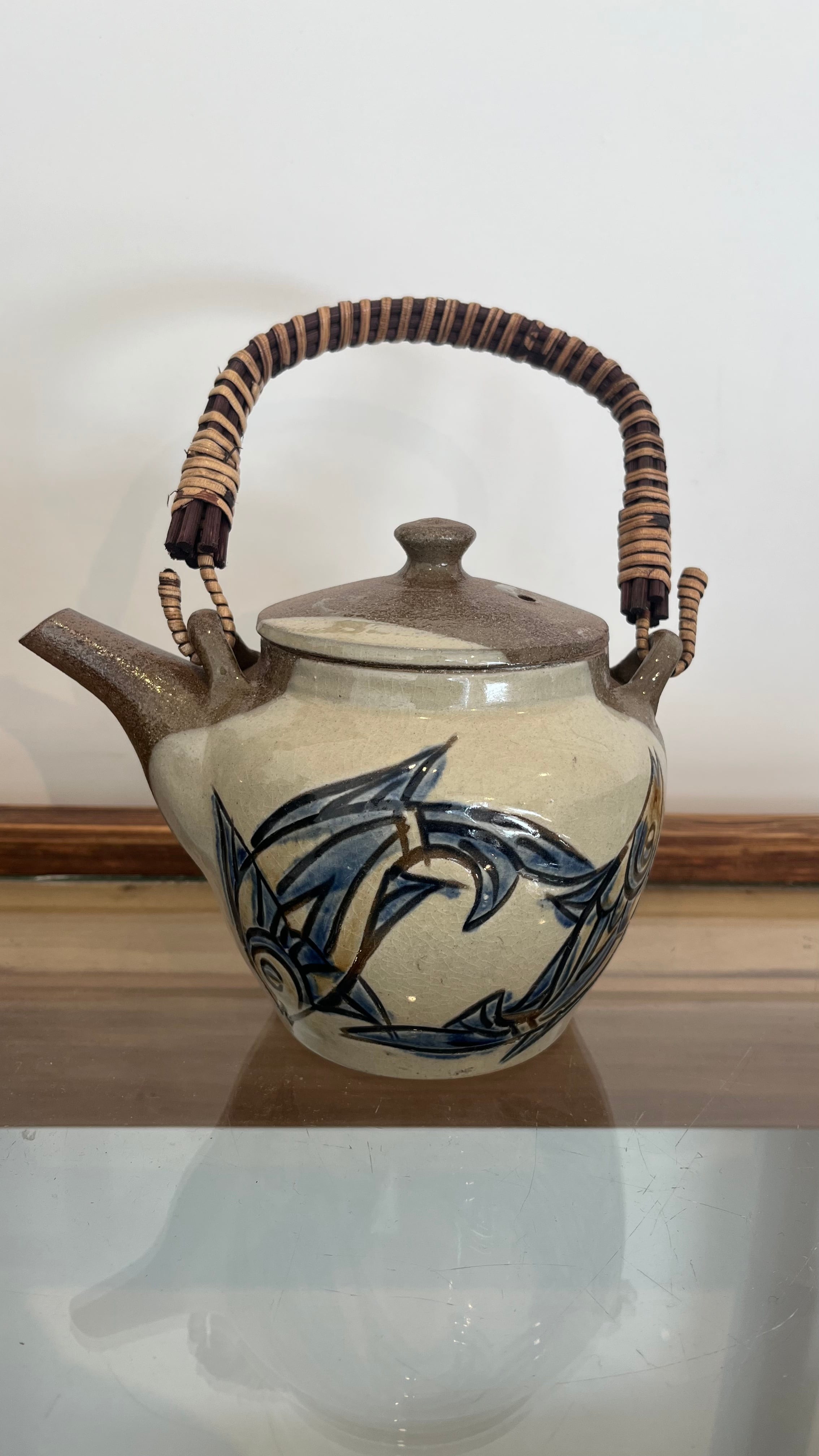 やちむん 次郎窯 魚紋 チューカー(急須)茶×白