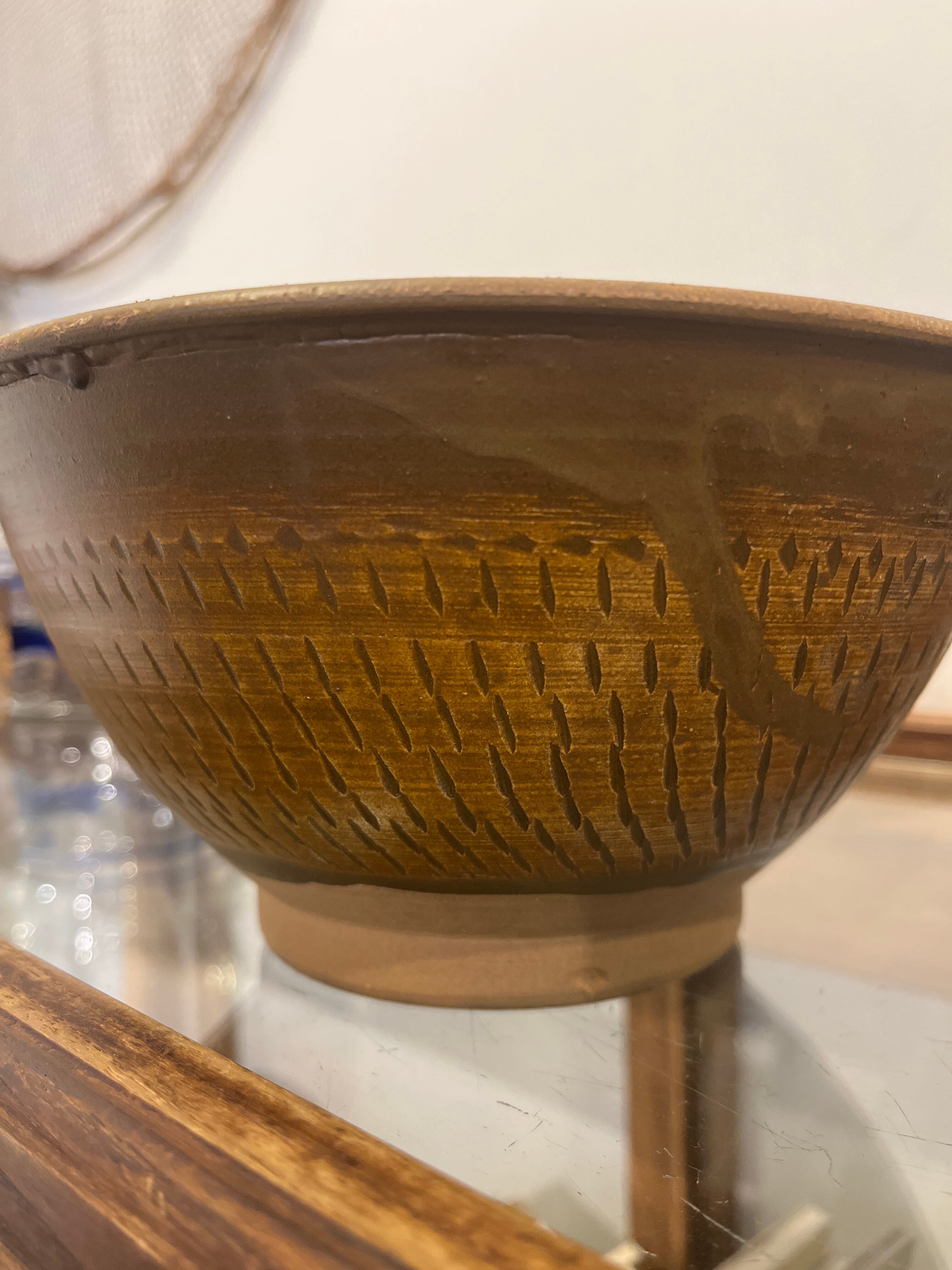 小鹿田焼 7寸深すり鉢 トビカンナ 片口 飴
