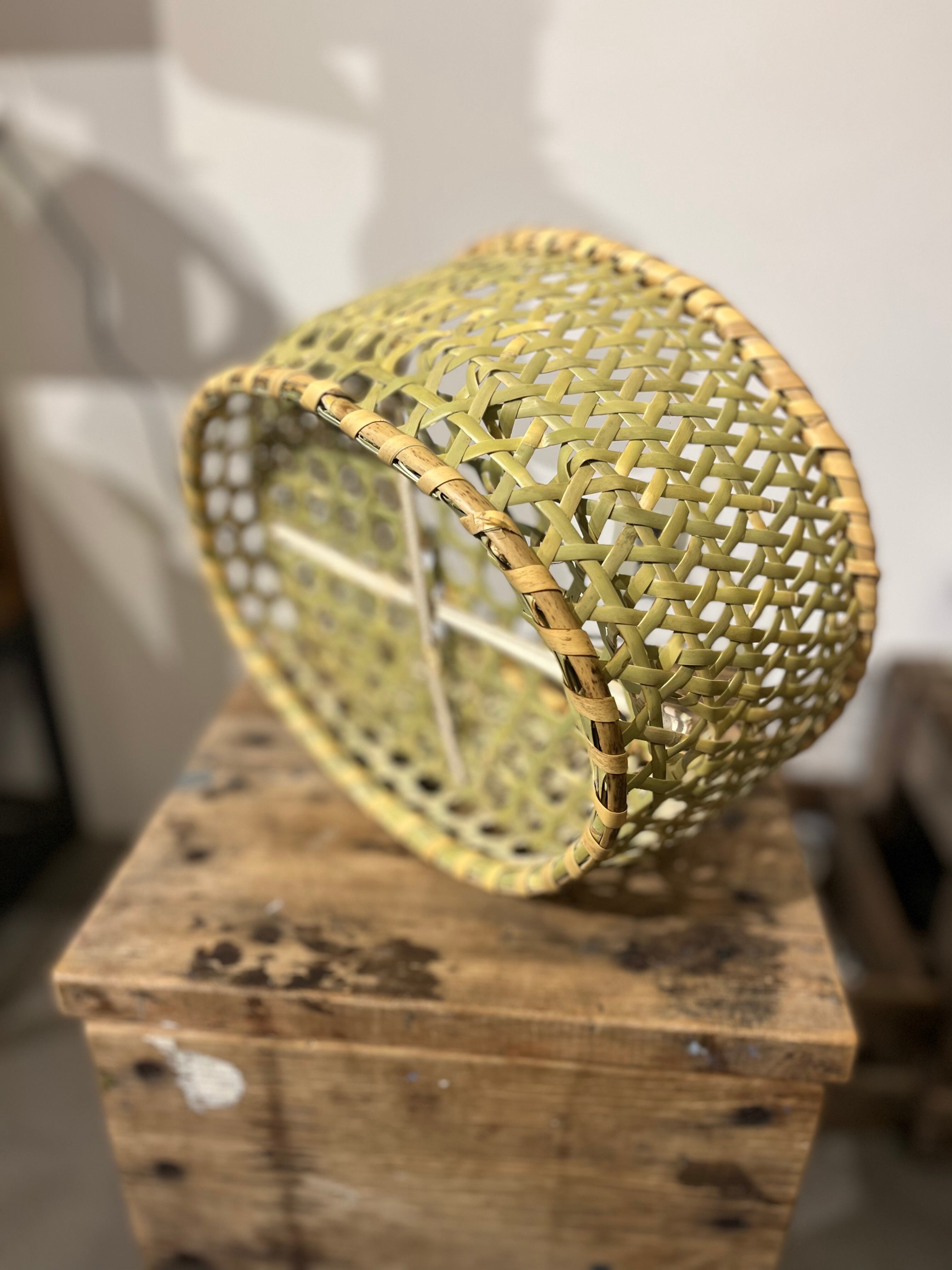 しなやかで軽く丈夫な根曲竹で編まれた竹細工。美しく空間を彩る脚付きです。