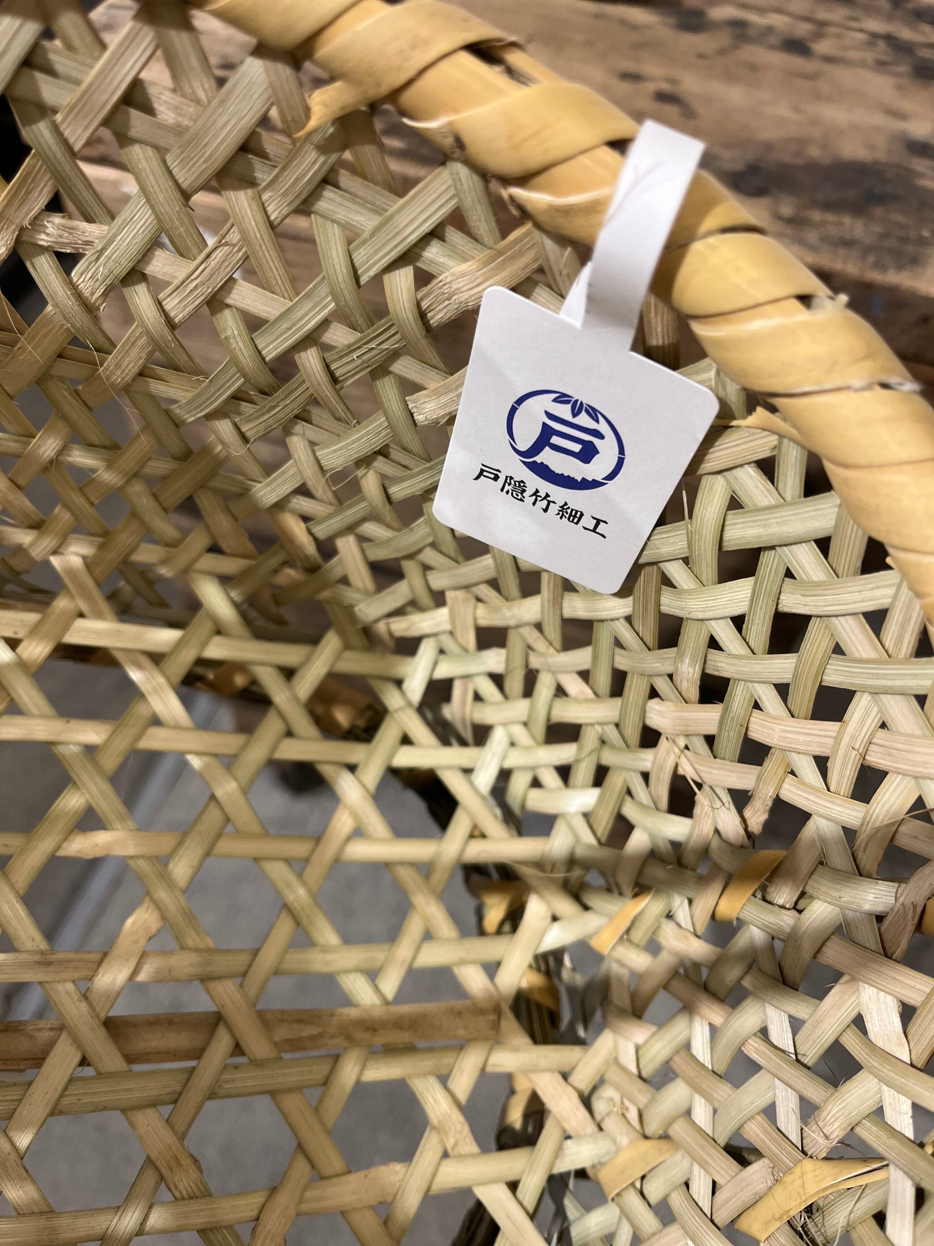 長野県戸隠産の竹細工の楕円の碗かごです。