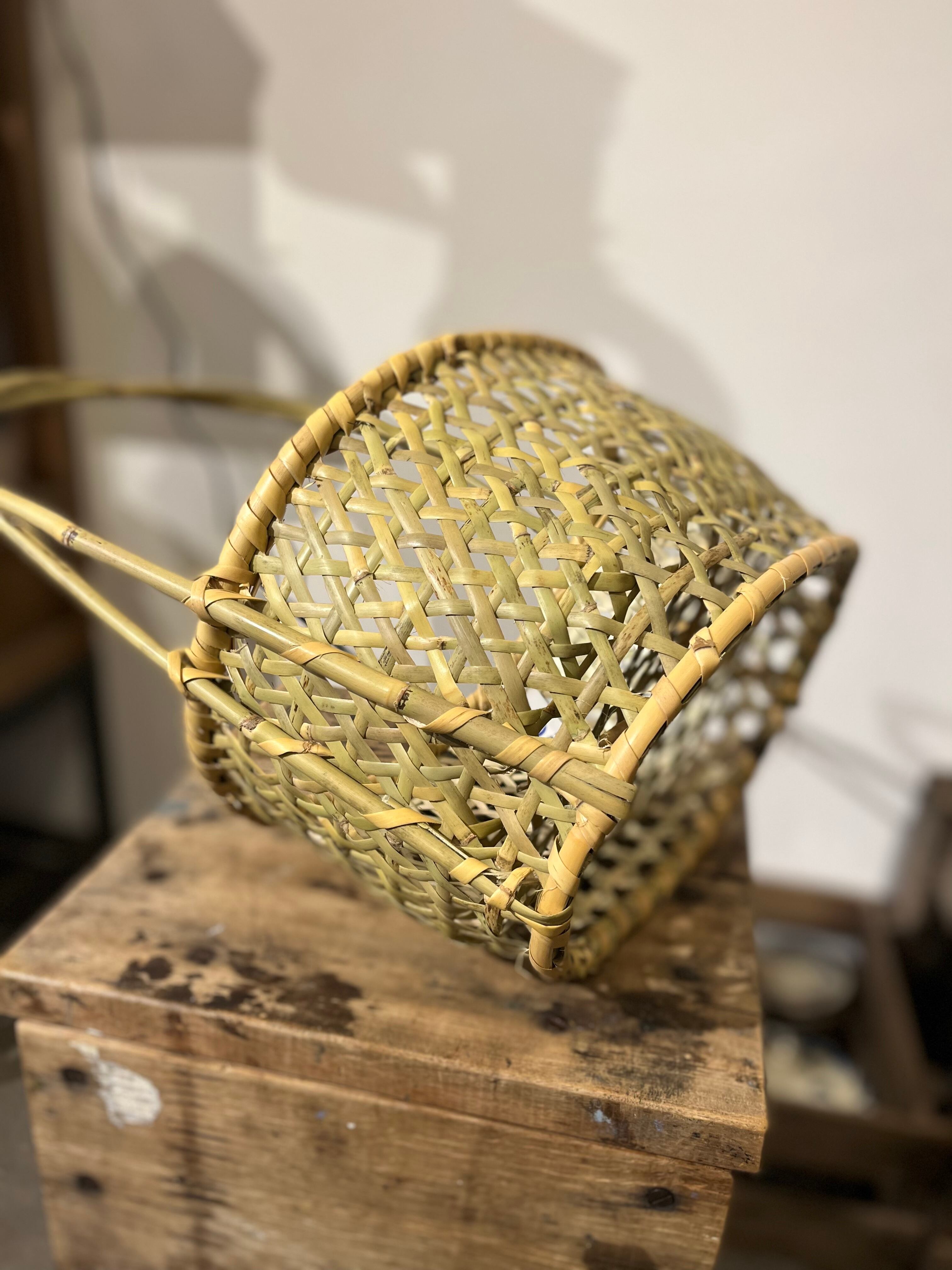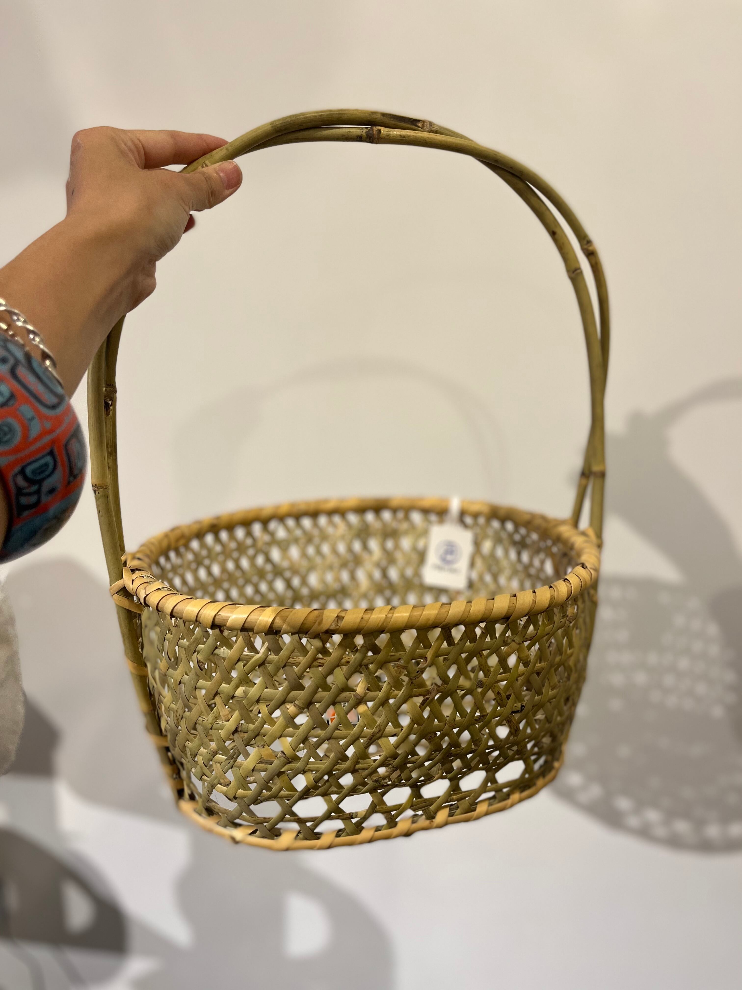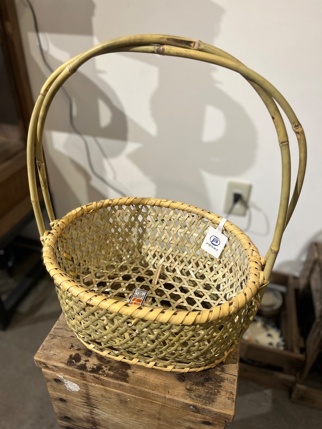 長野県戸隠 竹細工 とってつき碗かご大 楕円 脚付き