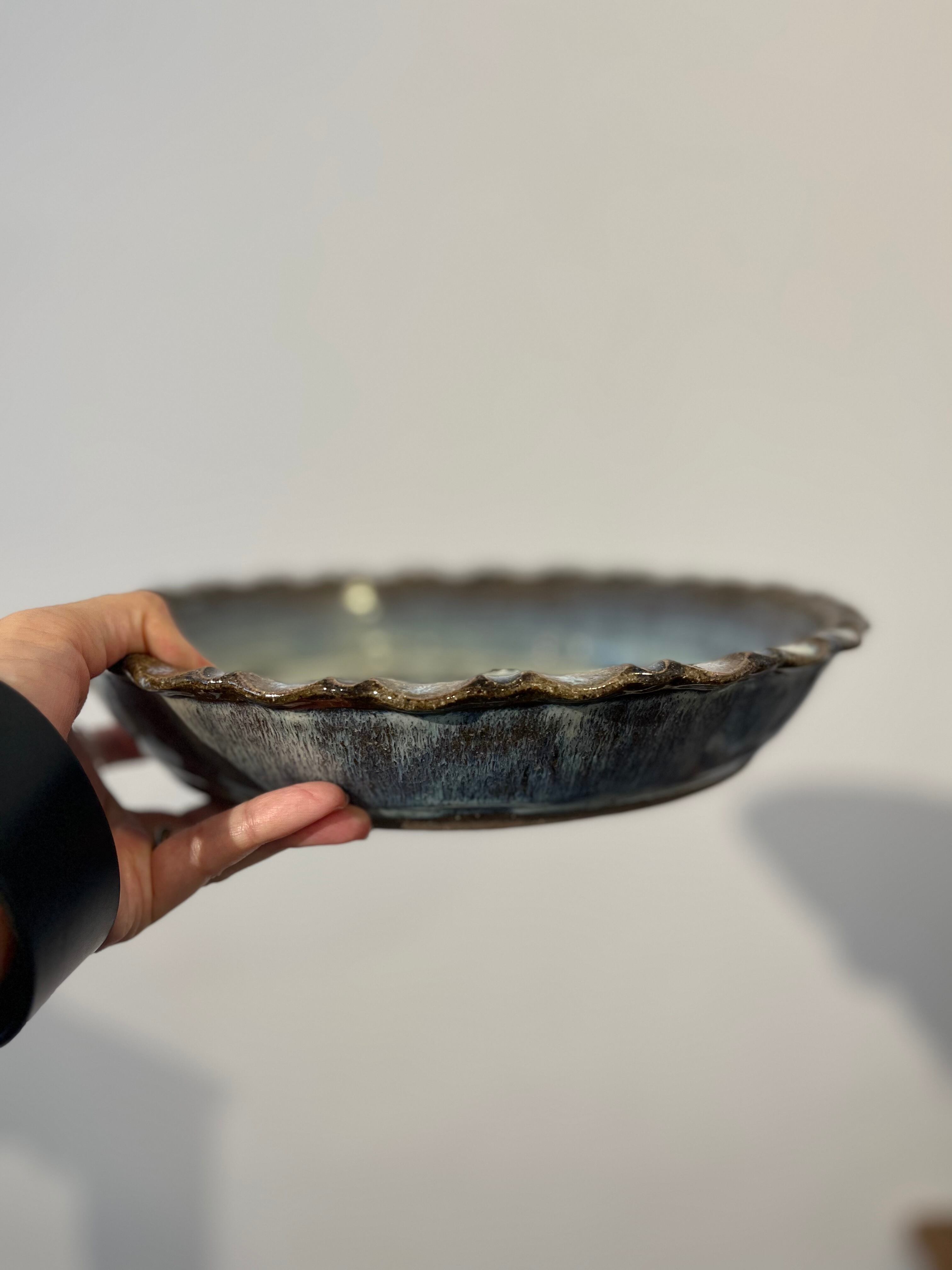 小代焼 瑞穂窯 福田るい パンドラ超特大 27.5 藁灰×ブルー