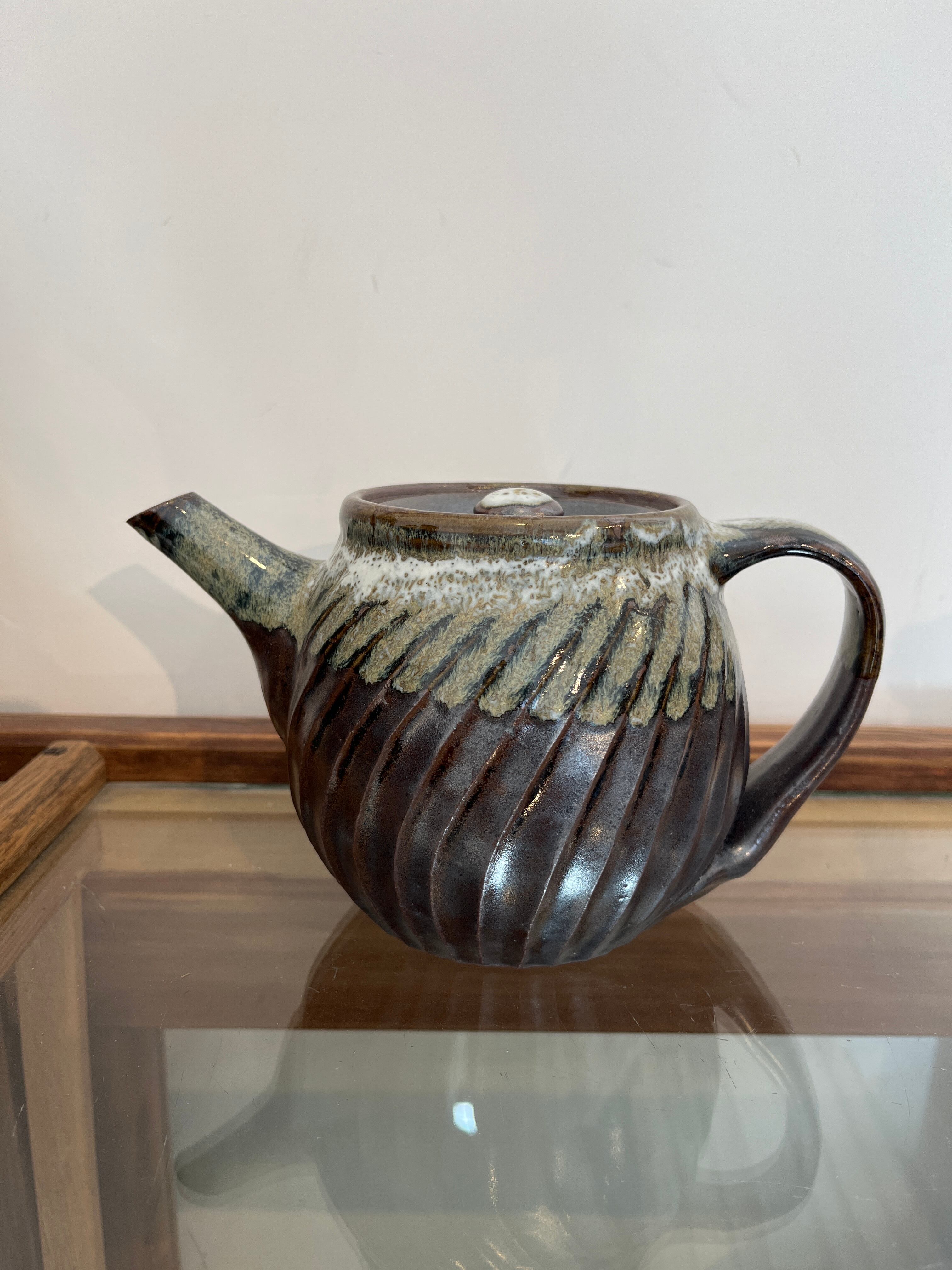 まもる窯 急須ポット大 斜め鎬 掛け流し