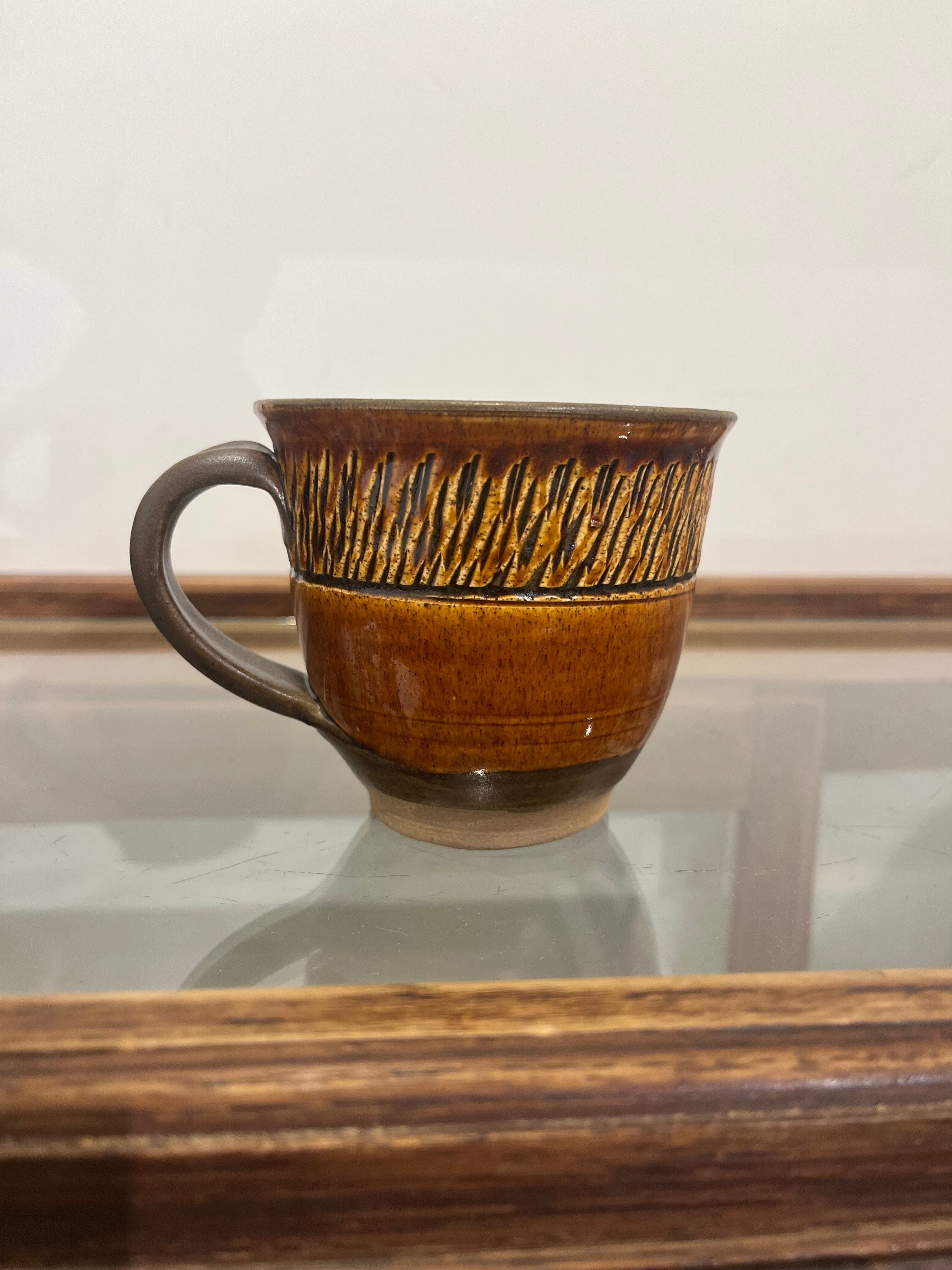 小鹿田焼 マグカップ トビカンナ 飴