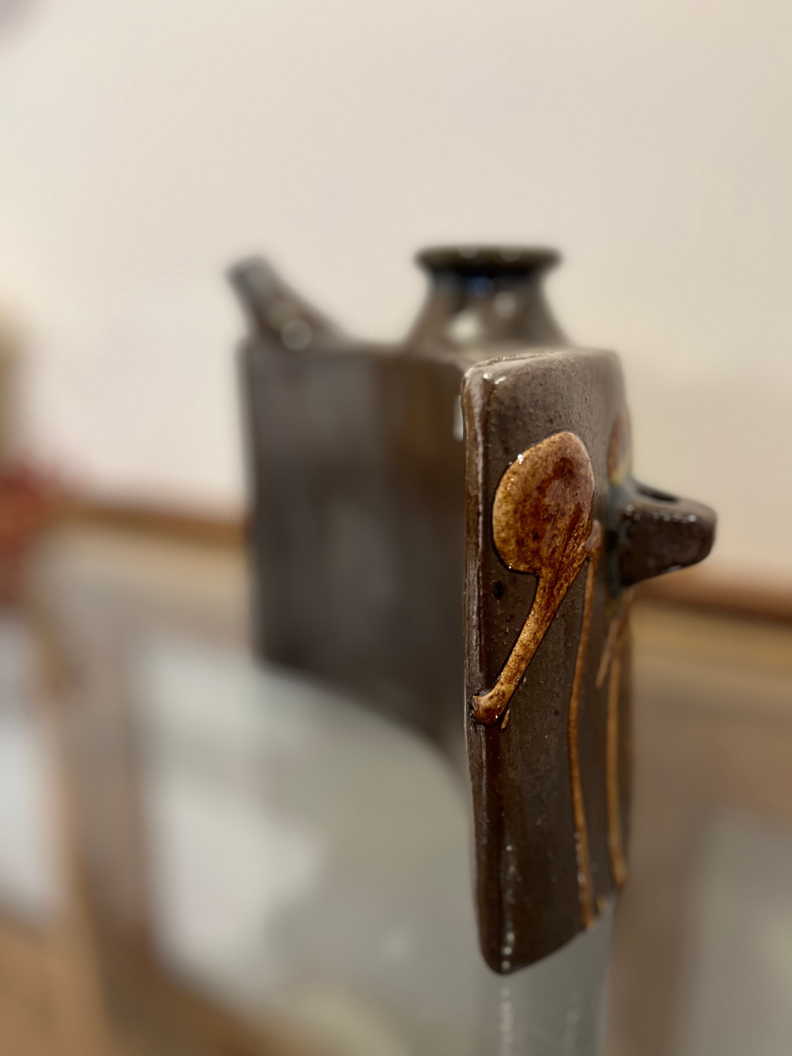沖縄県読谷村に工房を構える、壼屋焼茂生窯・上江洲史朗さん作の抱瓶です。